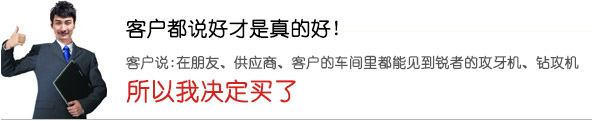 網站首頁| 多軸攻牙機| 多軸鉆孔機| 鉆孔攻牙機| 客戶見證| 公司實景| 技術支持| 免費試用| 新聞中心| 關于銳者| 聯系銳者